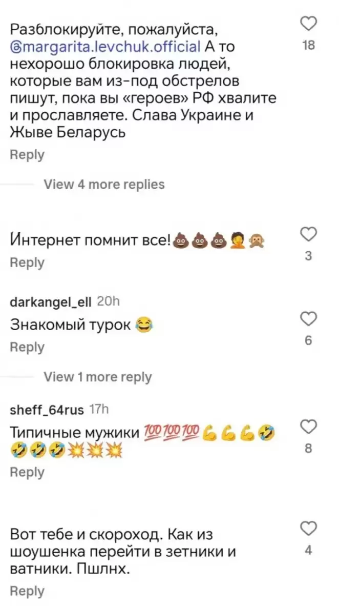 Маргарита оставила Андрею комментарий под тем постом: «Слава Украине и Жыве Беларусь!» — комик, недолго думая, забанил певицу. Да и вообще ограничил возможность комментировать поздравление. Но люди пришли в комментарии под другими видео юмориста и начали там передавать приветы от Маргариты, а также делиться своими мыслями по поводу позиции Андрея.
