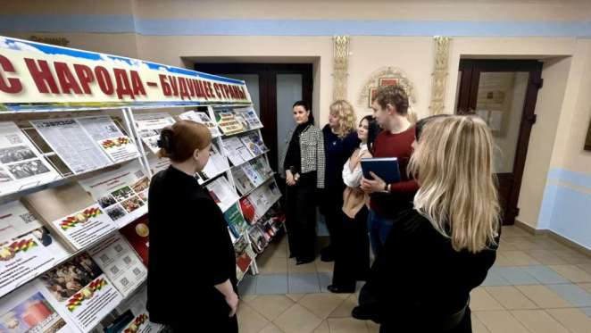 Стенд, посвященный «Всебелорусскому народному собранию», в Гродненской областной библиотеке. 9 декабря 2025 года. Фото: Grodnolib.by
