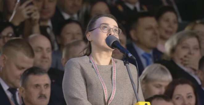 Анна Канопацкая в это время вышла к микрофону в зале, но ответить Лукашенко ей не дали.