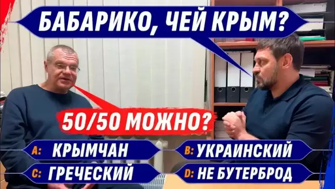 «Заходит Бабарико, садится ко мне, я достаю пистолет, приставляю ему к виску и говорю: «Бабарико, быстро скажи мне, чей Крым! Только стоп! Не говори мне, чей Крым, а скажи, что ты не знаешь».