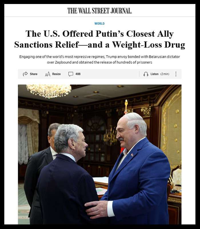 В одной из бесед Коул предлагал Лукашенко перейти от стола «лузеров» — Ирана, КНДР или Венесуэлы — за стол «крутых парней» во главе с США. В итоге Лукашенко, возможно, и похудеет с помощью Zepbound, но за «правильный стол» вряд ли перейдет.
