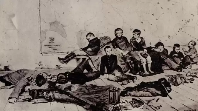 И я вспомнил картину польского художника Яцека Мальчевского «Польские студенты, сосланные в Сибирь», 1891 года создания. Мальчики совсем, они сидят у стены, на которой висит карта огромной империи. Кто-то сидит, кто-то лежит на полу.