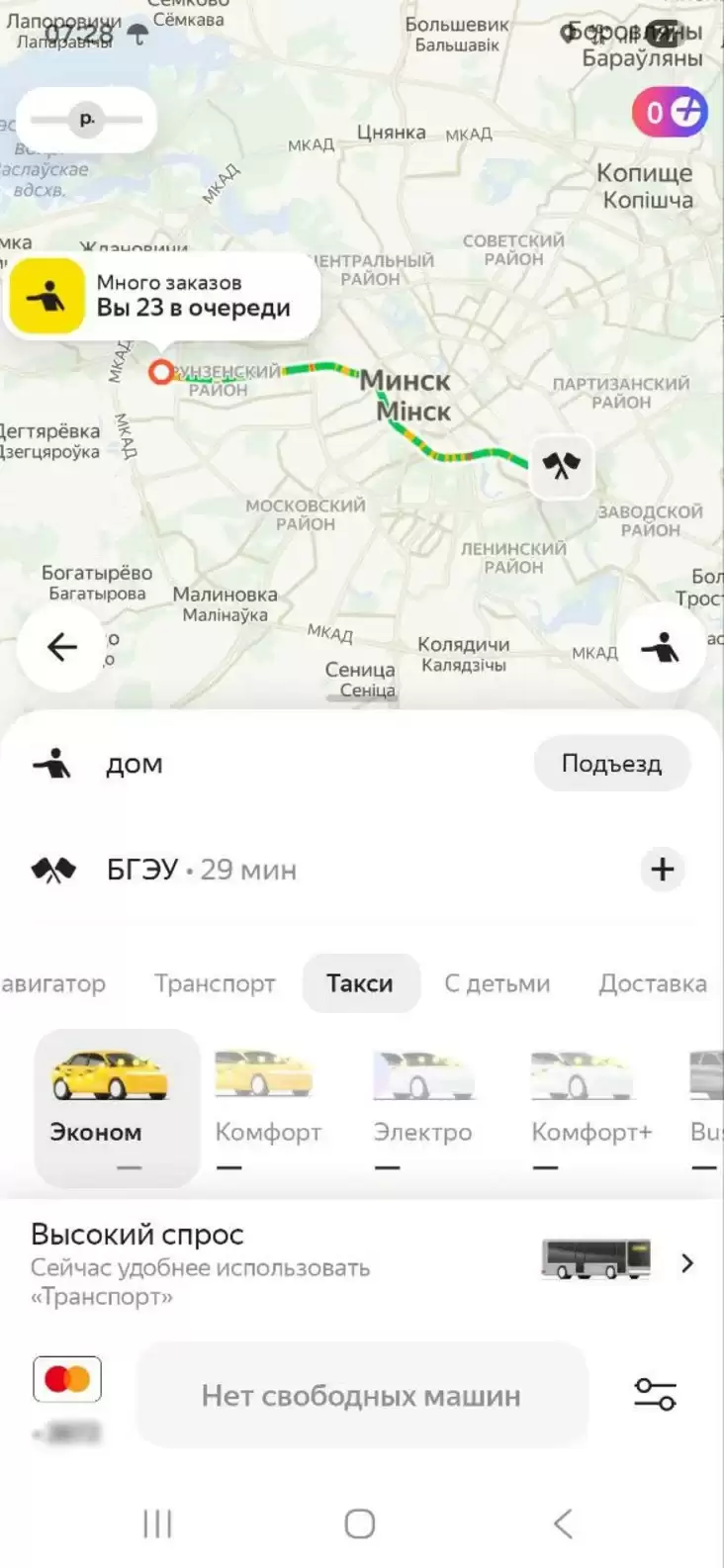 Сейчас он 23‑й в очереди. Недоступны машины ни в одном из тарифов.