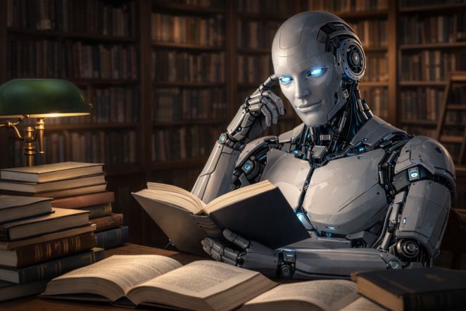 Искусственный интеллект учится на человеческих знаниях. Изображение сгенерировано искусственным интеллектом. Файл: ChatGPT