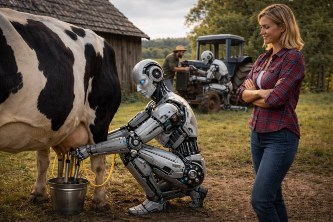 Роботы работают в сельском хозяйстве. Изображение сгенерировано искусственным интеллектом. Файл: ChatGPT