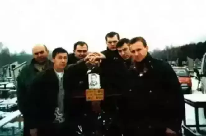 Сергей Элькинд (третий слева) с братвой на могиле авторитета «Матвея», преемником которого стал «Заяц». Фото: Ежедневник