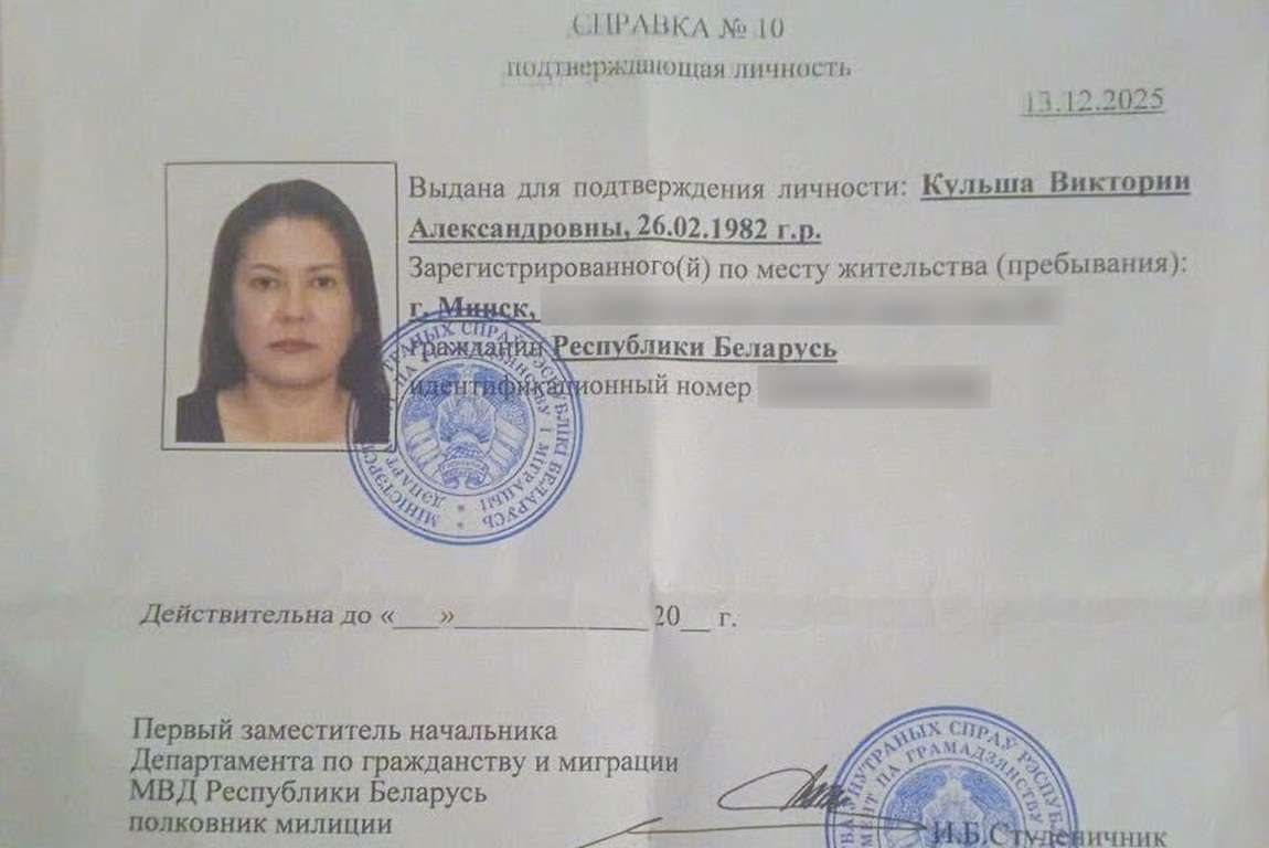 Справка, выданная Виктории после освобождения. Фото: Виктория Кульша