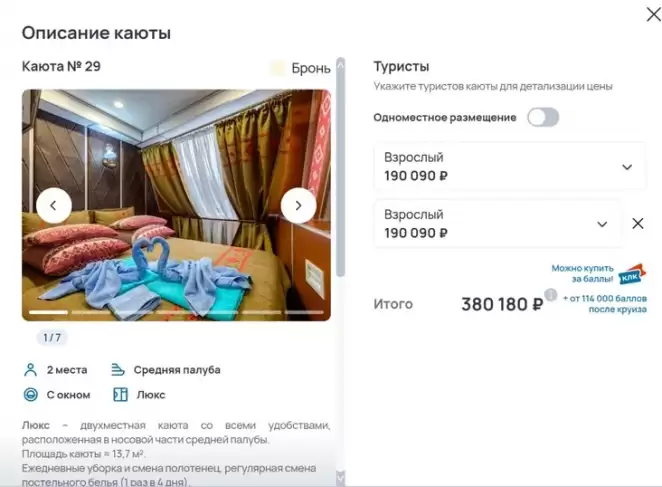 А за одноместную эконом-каюту на июль с маленьким иллюминатором вместо окна просят уже 3868 рублей. Люкс для двух человек обойдется приблизительно в 14 200 рублей — это почти что $5000 в эквиваленте, сопоставимо с отдыхом в любимой белорусами Турции.
