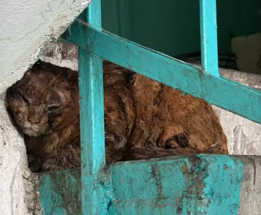 «Выжила только кошка». Обгоревшая, она просидела 12 часов на лестнице после пожара