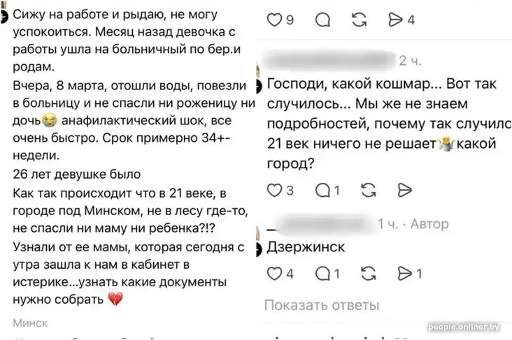 Напомним, 8 марта в Дзержинской ЦРБ умерла 26‑летняя беременная, ее ребенка медики также не смогли спасти. Изначально о трагедии в Threads рассказала коллега погибшей.