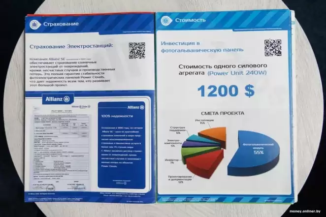 Купить одну панель можно было примерно за $1800. Из этой суммы $1200 шло на саму панель, а остальное — на доставку, обслуживание и «бэк-офис». Была и сетевая составляющая: за привлечение новых людей обещали процент от их вложений.