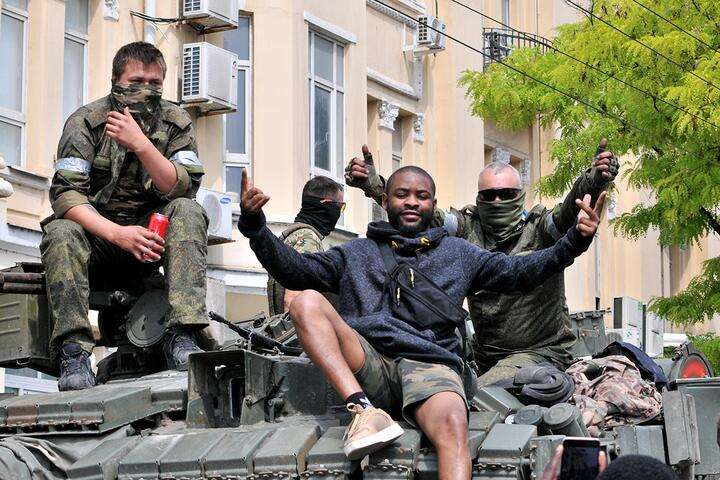 Прохожий фотографируется с наемниками ЧВК Вагнера возле штаба Южного военного округа в Ростове-на-Дону, 24 июня 2023 года. Фото: Reuters