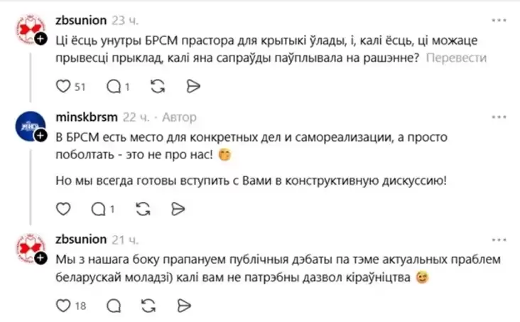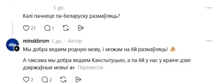 Пользователи также поинтересовались, когда БРСМ начнет разговаривать на белорусском языке: