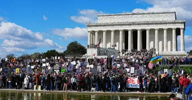 Центр Вашингтона в течение всего дня был охвачен митингами, толпы людей прошли маршем по столице страны. Протестующие выстроились вдоль ступеней Мемориала Линкольна и заполнили Национальную аллею.