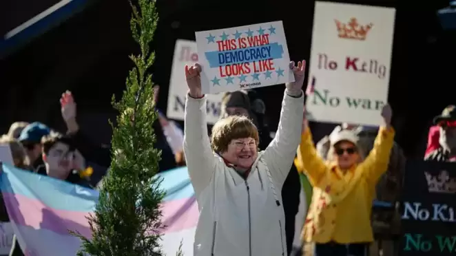 Толпы людей собрались как в больших, так и в малых городах. Митинги «Нет королям» начинаются в Бостоне, штат Массачусетс, Нэшвилле, штат Теннесси, и Хьюстоне, штат Техас.