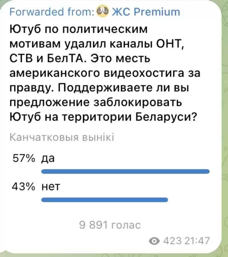 И предлагают проголосовать — блокировать Ютуб в Беларуси в ответ или нет. Но даже среди их аудитории не все хотят остаться без Ютуба.