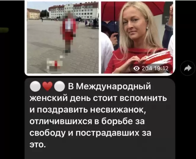 Я с Анжеликой некоторое время еще переписывалась. И вместе были в чате «Свободный Несвиж», у меня еще остался скрин фото от 8 марта 2021-го: «Поздравим наших активных змагарок!»