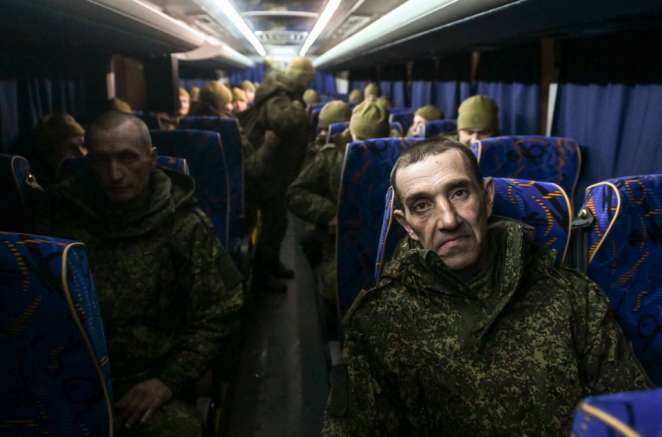 Российские военнопленные, освобожденные из украинского плена после обмена военнопленными между Россией и Украиной, сидят в автобусе по прибытии на аэродром в Московской области, Россия. 5 марта 2026 года. Фото: Mikhail Voskresenskiy / Sputnik Moscow region Russia / East News