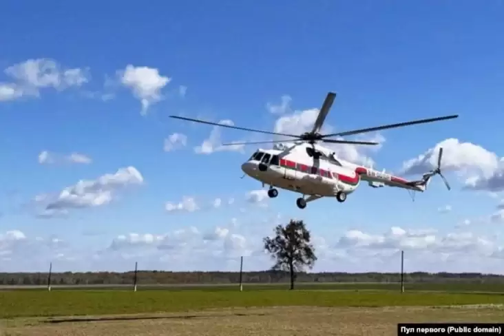 Резиденция в Лясковичах во время визита туда Александра Лукашенко. На снимке заметен его вертолет (справа), 6 предположительно военных машин (слева и внизу) и порядка 20 гражданских машин разного назначения (в центре), 27 апреля 2026 года