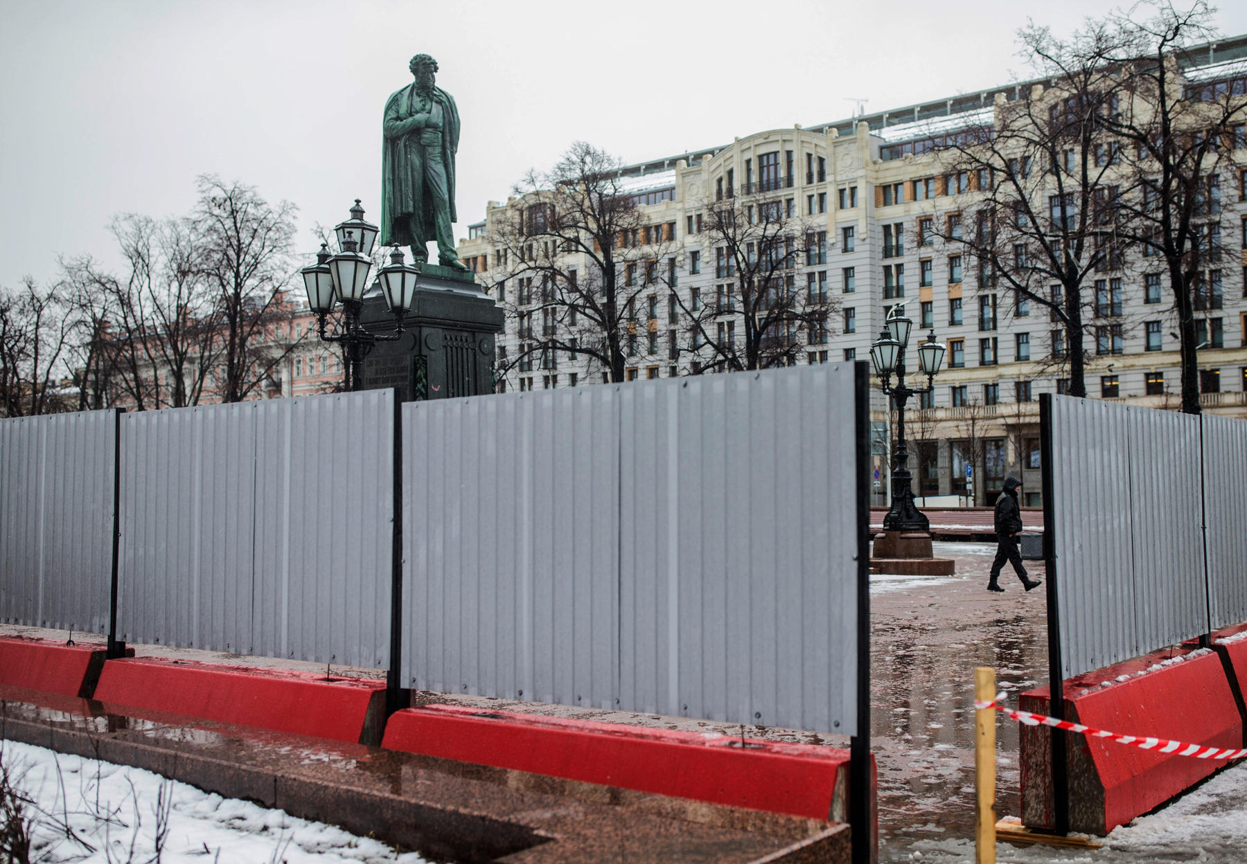 Пушкинскую площадь Москвы после протестов огородили забором