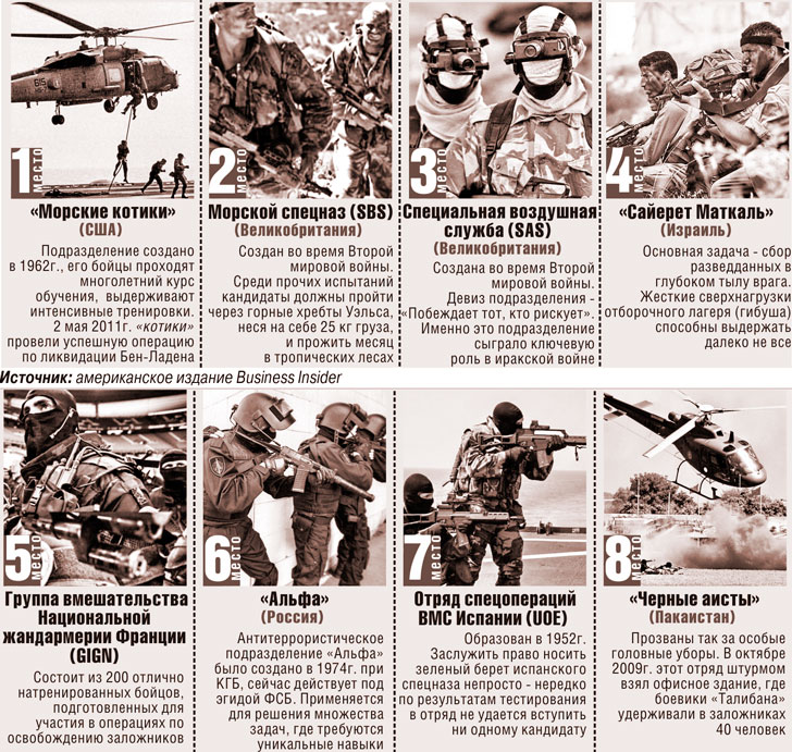 Топ-8 элитных спецподразделений мира - в одной картинке