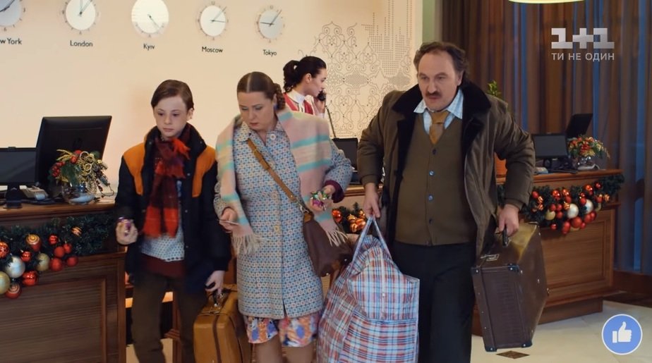 Одетые белорусы скромно, по-советски. Приехали они в Киев с клетчатыми сумками, популярными у челноков и продавцов рынка Ждановичи. Уже с самого начала белорусы не могут разобраться с вертящейся дверью, а также не знают, как использовать пластиковые карточки в качестве ключа от двери номера.