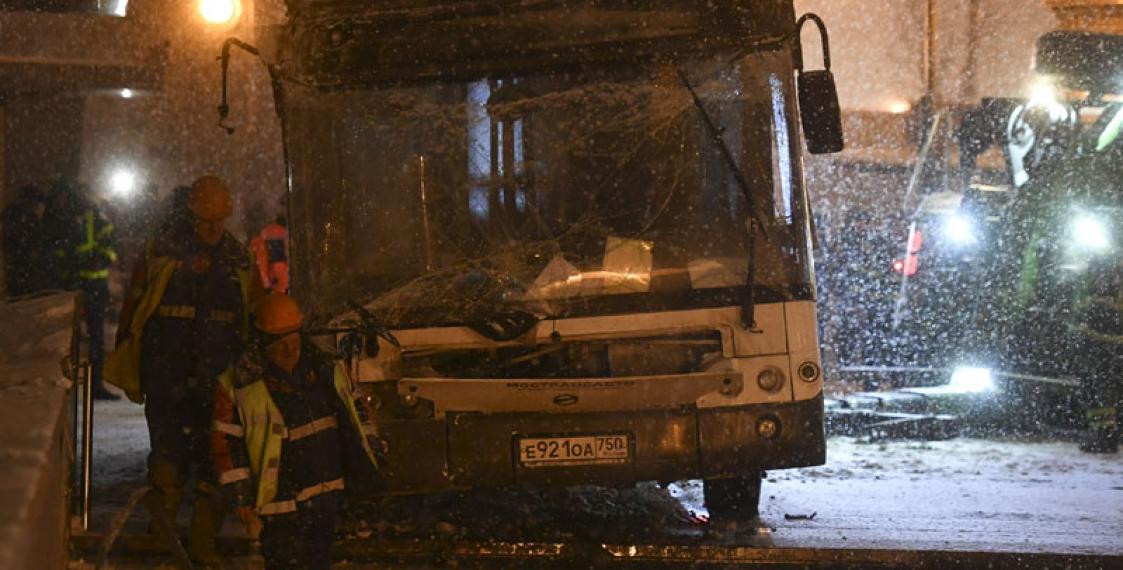 Последствия ДТП ликвидировали более 50 человек и 17 единиц техники. Автобус из подземного перехода вытащили через несколько часов после происшествия.