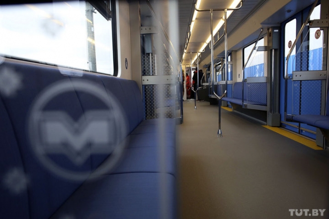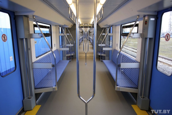 А вот так новый поезд для минской подземки выглядит изнутри.