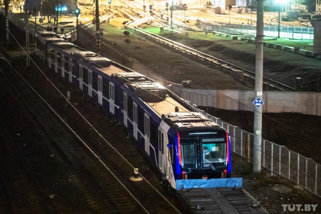 В Минск привезли первый поезд метро, сделанный в Беларуси. Фотофакт