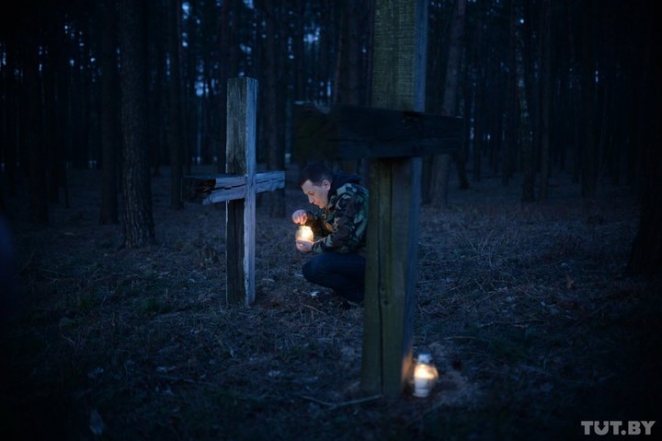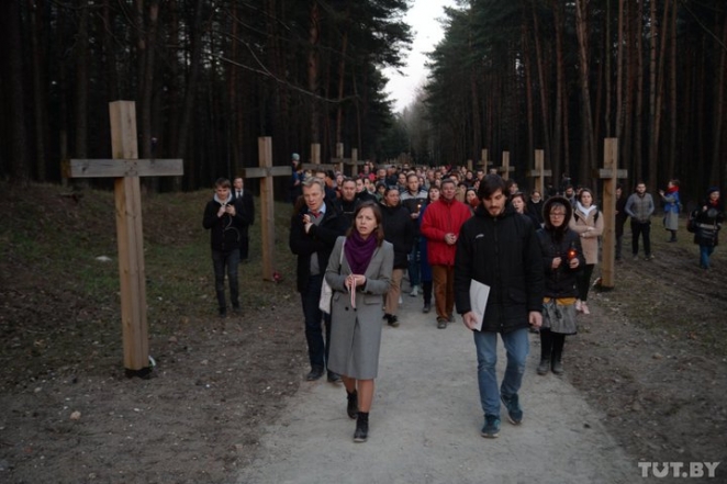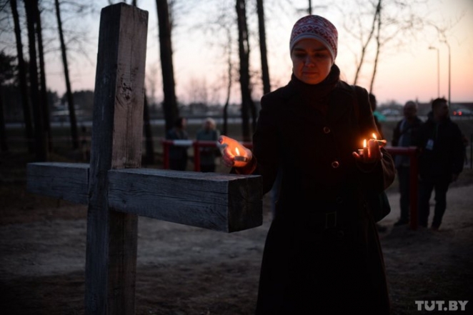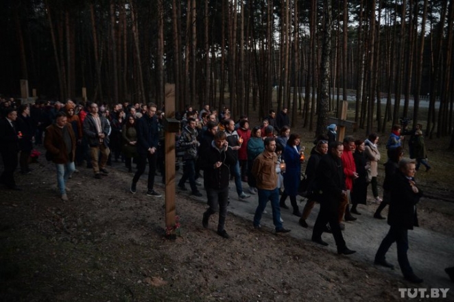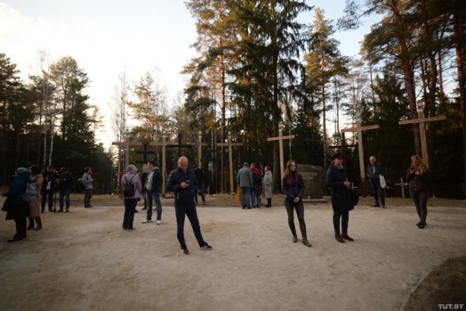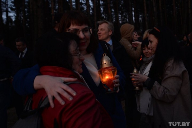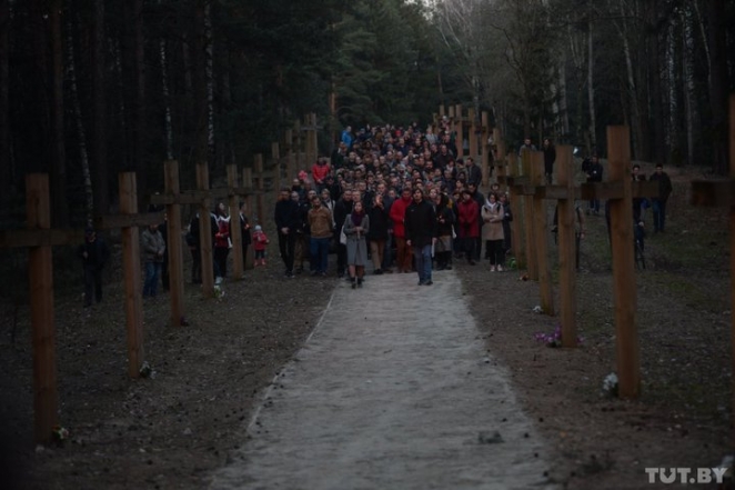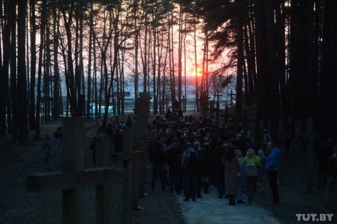 В урочище собралось около 200 человек. Кто-то пришел с цветами, кто-то со свечами, кто-то просто, чтобы постоять у крестов. На входе в урочище и возле «Голгофы» дежурили сотрудники милиции в штатском.