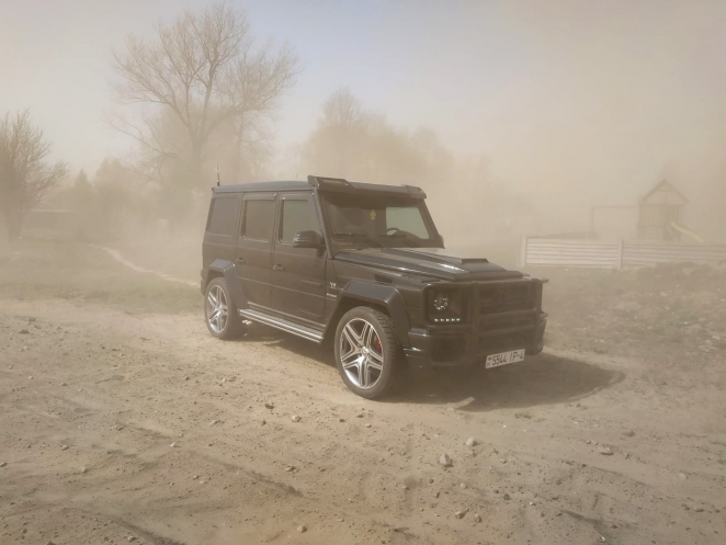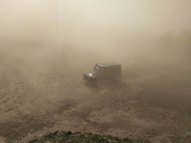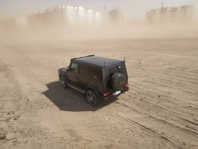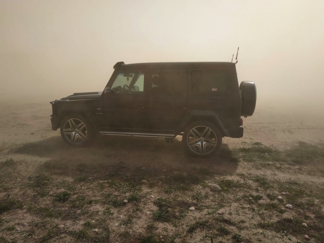 Девушка села в Gelandewagen и отправилась в самый эпицентр песчаной бури