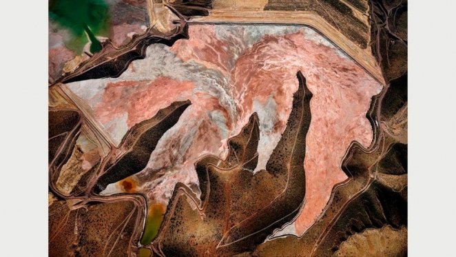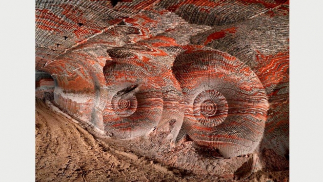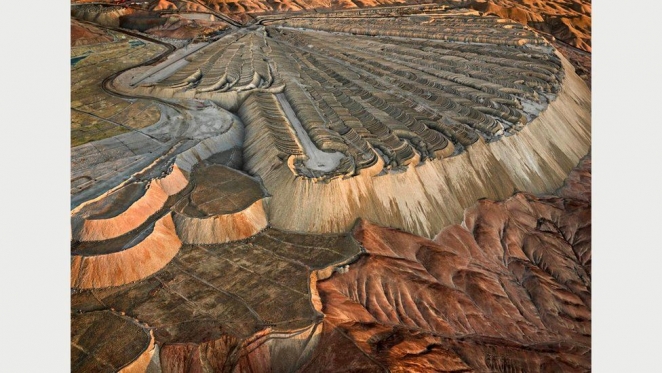 В одной из его знаменитых серий запечатлены горы старых автомобильных покрышек в Калифорнии. В другой - горы сжигаемой слоновой кости, изъятой у браконьеров. В третьей - чудовищные волнообразные изгибы разрабатываемой человеком каменной породы на одном из крупнейших в мире открытых рудников, где добывают медную руду... В таком радикально антиидиллическом видении мира есть своеобразная мрачная ирония.