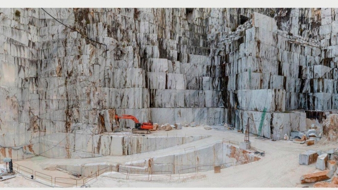 Буртинского интересуют не только последние человеческие "достижения". Мраморные карьеры в итальянской Карраре разрабатывались со времен древнего Рима (этот камень использовал для своих скульптур Микеланджело).