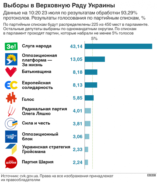 Эти параллели вполне оправданы. За "Слугу народа" в абсолютных цифрах проголосовали примерно столько же избирателей (5,9 миллиона человек), сколько отдали свои голоса за Владимира Зеленского в первом туре президентских выборов (5,7 миллиона человек).