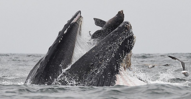 Морской лев в пасти кита. Фото, которое удается раз в жизни
