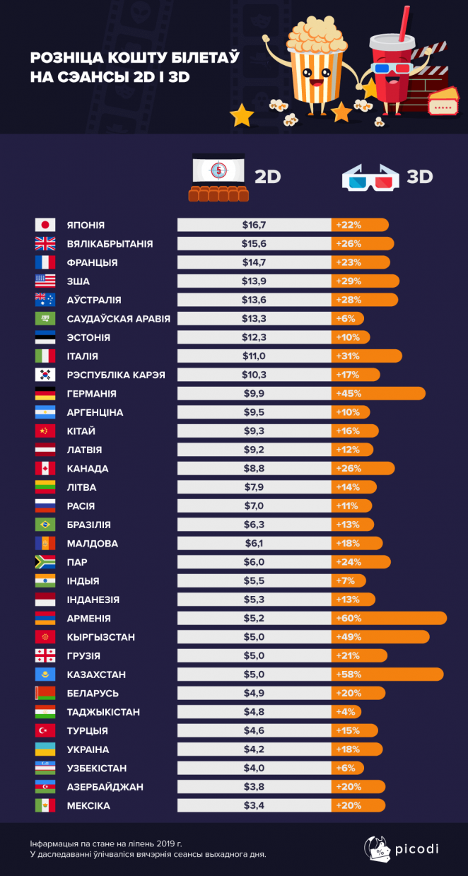 В разгар летнего кинотеатрального сезона, полного премьер в первую очередь для младшей аудитории, в Picodi.com решили проанализировать отличие цен на билеты в кино по всему миру.