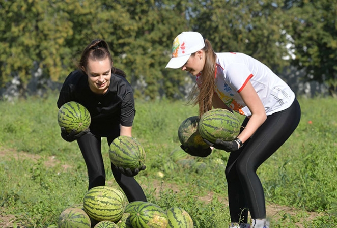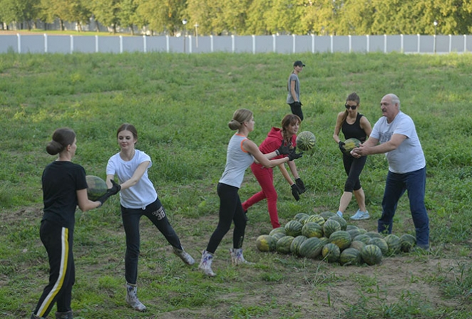 Лукашенко в компании красавиц занялся уборкой арбузов