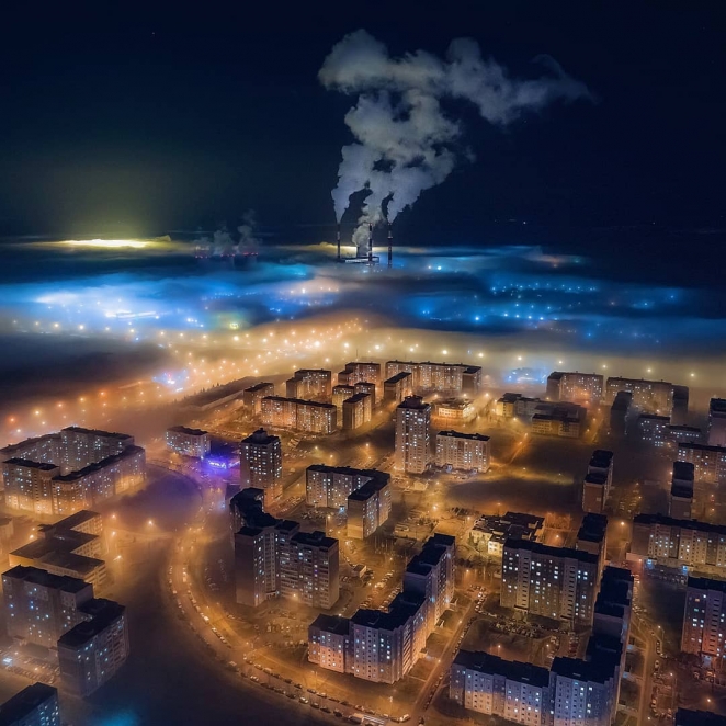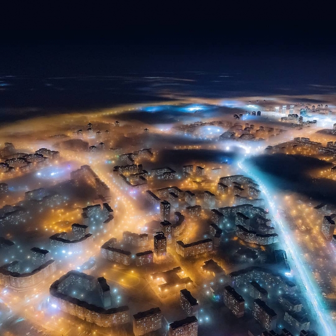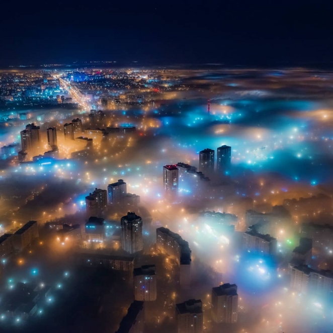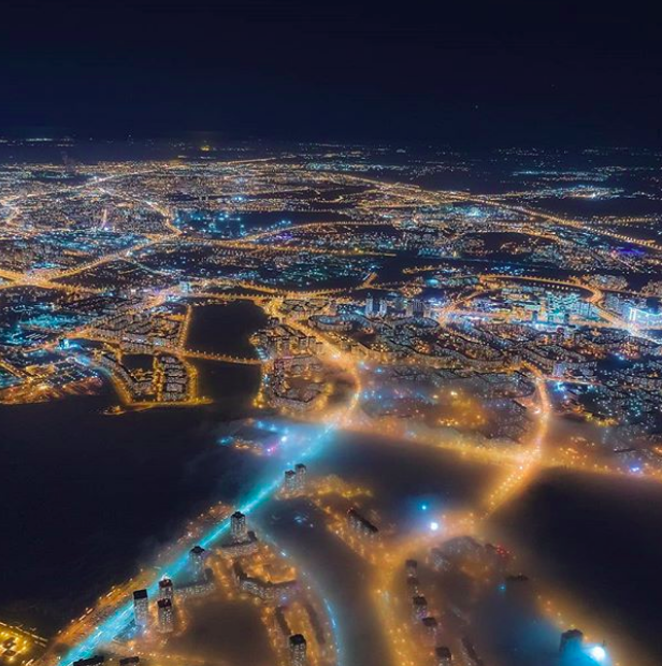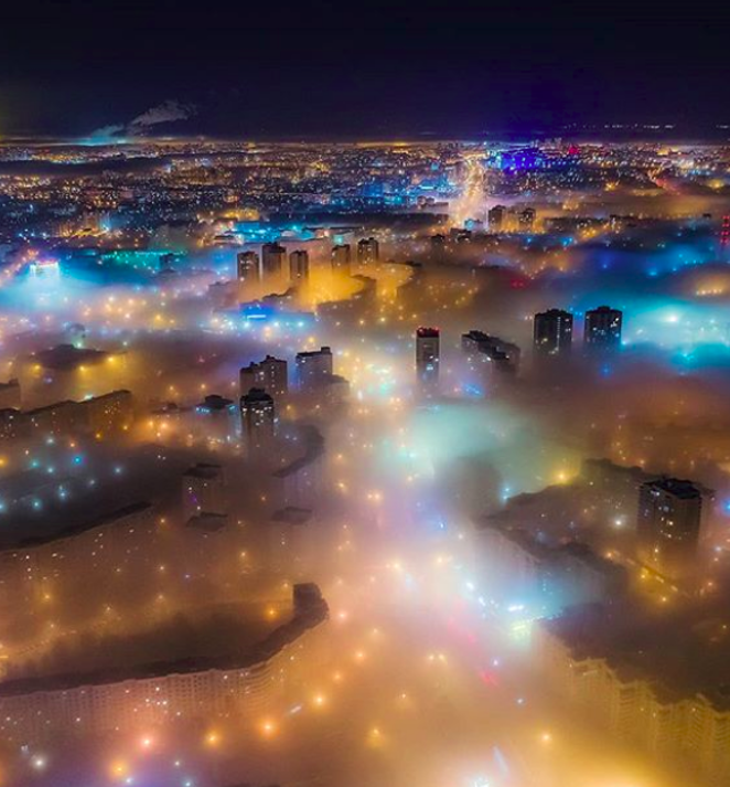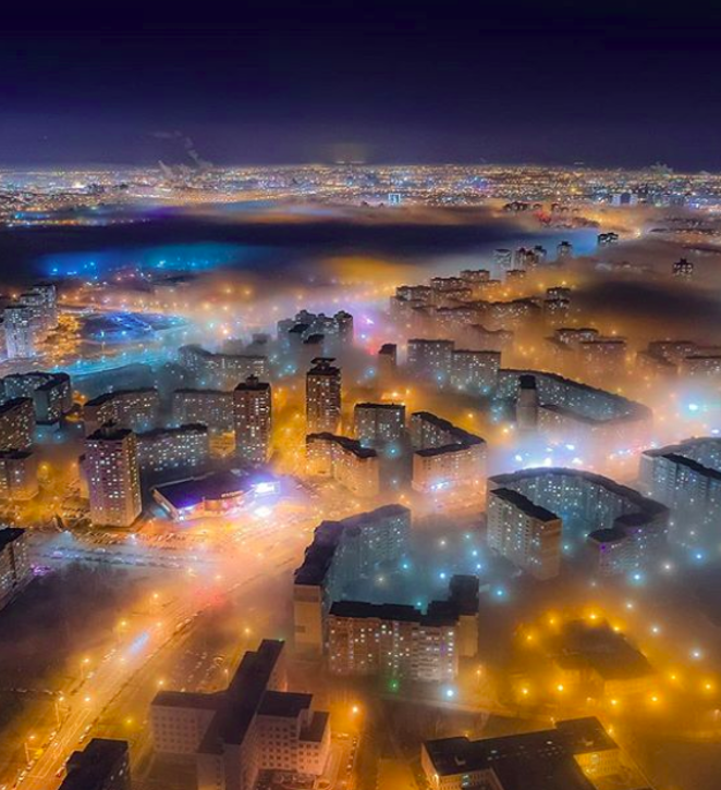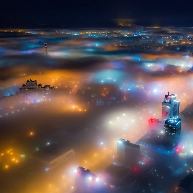 Фотографии ночного Минска в тумане с высоты птичьего полета, а также таймлапс-видео опубликовал в Instagram фотограф Димид Важник.
