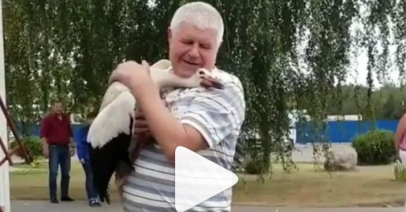 Трогательное видео: потерявшийся аистенок из Марьиной Горки встретился со своими спасителями