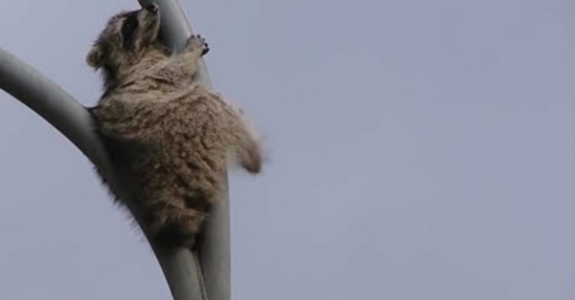 Убегавший от спасателей енот повторил трюк из «Миссия невыполнима»