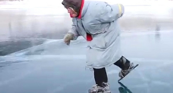 Рассекающая по Байкалу на самодельных коньках бабушка покорила иностранцев