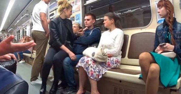 Девушка в минском метро садится незнакомым парням на колени — посмотрите на их реакцию
