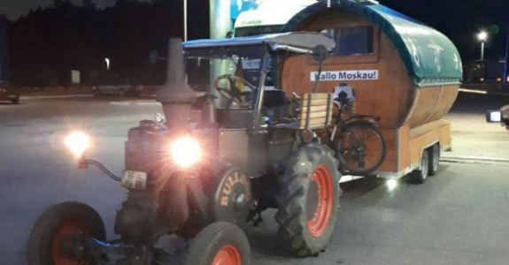 Немецкий болельщик едет на тракторе через Беларусь в Россию