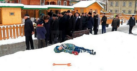 В России мальчик притворился спящим в сугробе, увидев делегацию чиновников