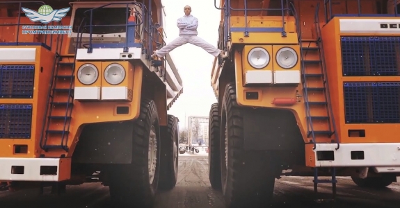 Белорус сел на шпагат между двумя движущимися БелАЗами, бросив вызов Ван Дамму