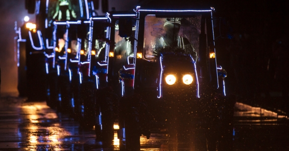 Шоу тракторов, составленные из машин елка и снежинки - лучшие новогодние автоперфомансы Беларуси