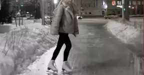 «И красиво, и страшно одновременно». Девушка на коньках прокатилась по тротуарам Гомеля