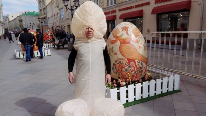 Известного российского телеведущего задержали в центре Москве в костюме пениса