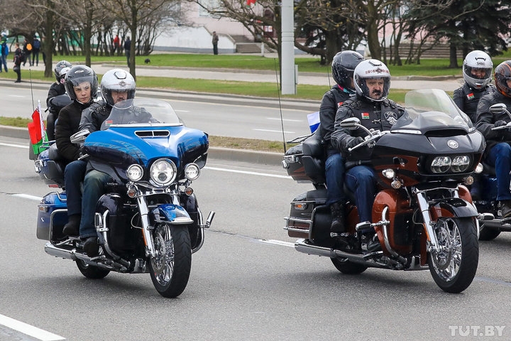 Сын Лукашенко открыл байкерский сезон на Harley под российским флагом