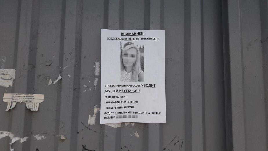 «Эта беспринципная особь уводит мужей из семьи. Ее не остановят ни маленький ребенок, ни беременная жена, будьте бдительны!» — из жажды мести потерпевшая сторона даже добавила номер телефона обидчицы.